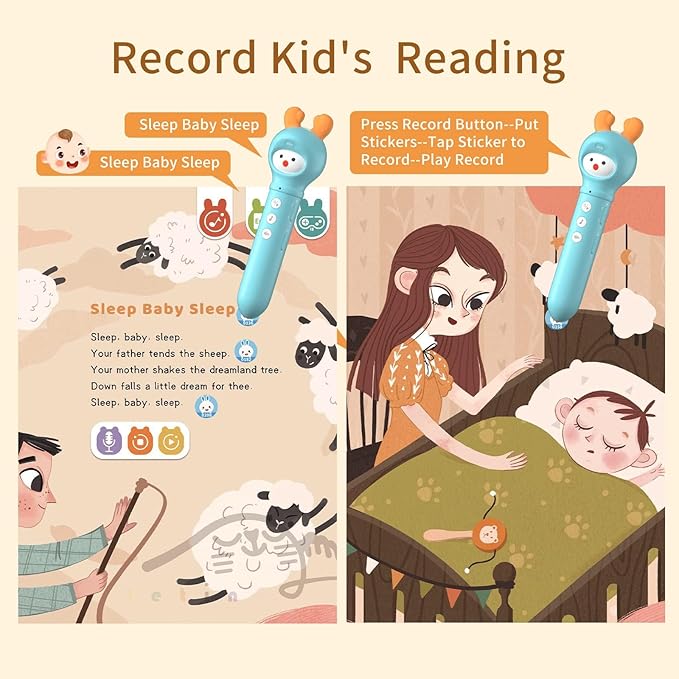 Lesepennen for barn har forhåndslagret med 48 barnerim, 16 historier og 14 sovemusikk, slik at barn kan lytte til musikk for å slappe av når de er utenfor studiet, og berolige babyen til å sove.